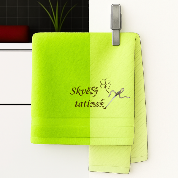 Ručník s vyšitým motivem je vyrobena z bavlny. Je velmi měkký a vysoce savý z příjemně měkkého materiálu. K barvení byly použity barviva nejlepší kvality, které zabezpečují trvalost barvy byť i po několika praních.