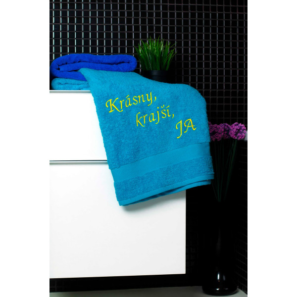 Osuška s vyšitým motivem je vyrobena z bavlny. Je velmi měkká a vysoce savá z příjemně měkkého materiálu. K barvení byly použity barviva nejlepší kvality, které zabezpečují trvalost barvy byť i po několika praních.